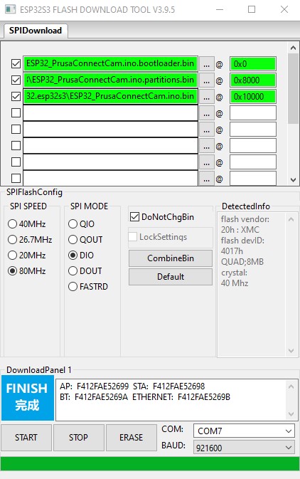 ./esptool --chip esp32s3 -p /dev/ttya0 -b 921600 --before default_reset --after hard_reset write_flash --erase-all --flash_mode dio --flash_size 8MB --flash_freq 80m 0x0 ESP32_PrusaConnectCam.ino.bootloader.bin 0x8000 ESP32_PrusaConnectCam.ino.partitions.bin 0x10000 ESP32_PrusaConnectCam.ino.bin